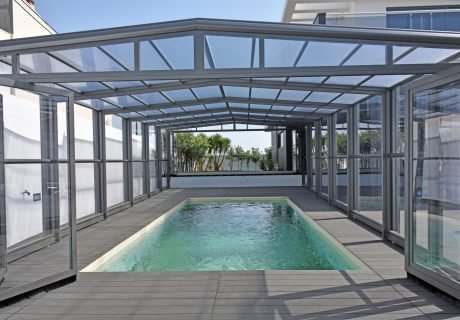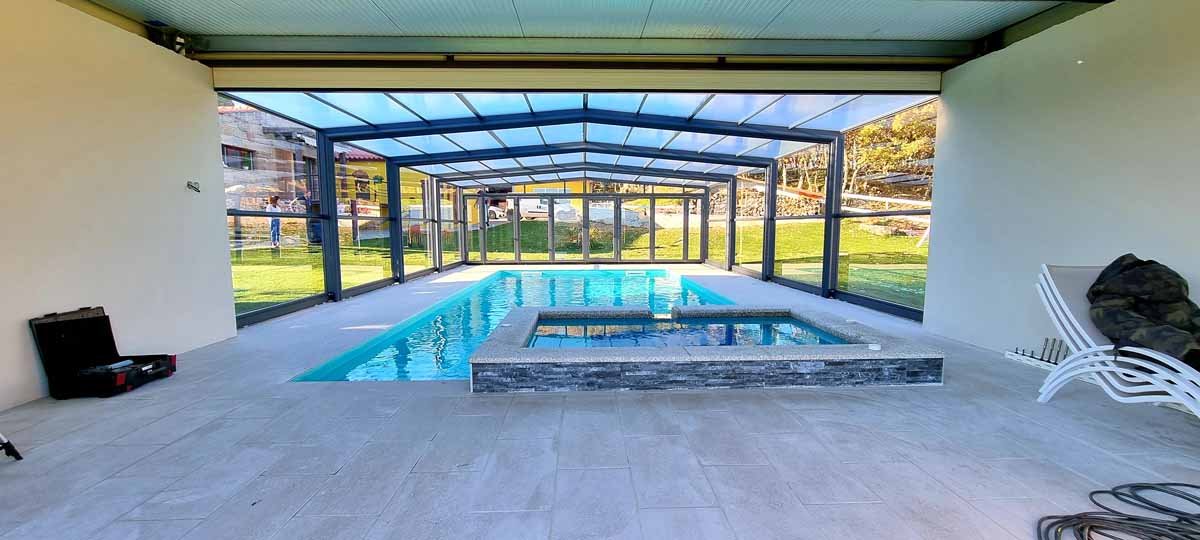 Esta nova concepção cria um volume interno de grande habitabilidade, permitindo uma utilização efetiva durante todo o ano. Ideal para piscinas com pouco espaço ao redor.