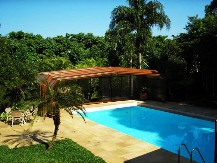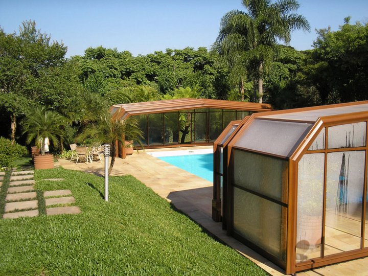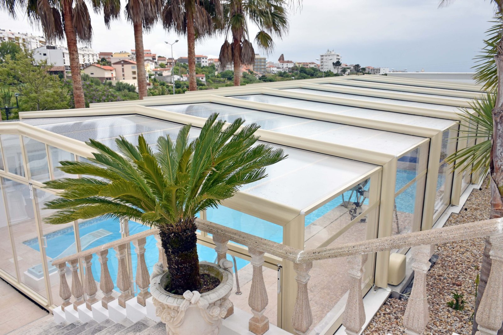 A LONAK oferece estruturas telescópicas com 5 e 7 ângulos, proporcionando soluções para cobrir piscinas de dimensões consideradas grandes, com larguras começando em 7.80m até 20.00m.